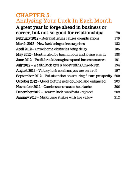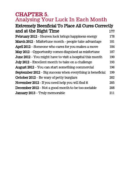 Lillian explains the nuances of pinpointing the timing of the one's luck phases and offers excellent advice on how to correct obstacles or missing elements that block potential to success and happiness. This book also includes BRAND NEW chapters to address additional "Secret Starts" and "Clashes and Penalties" not available in any of her previous Paht Chee books!