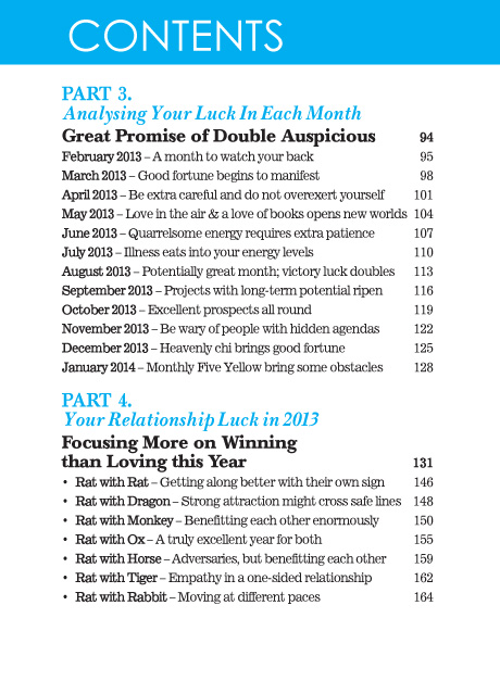 The RAT has a double dose of Big Auspicious stars to look forward to in 2013. These bring special kinds of attainments to those among you who are competitive and ambitious. You enjoy the Victory Star of 1; your vitality and confidence gets a boost; even your adversaries become friends! Make sure you activate these auspicious indications to ensure SUCCESS manifests for you big time!