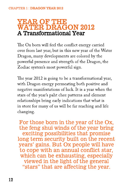 The Ox can build on all that's been achieved in the recent past and take advantage of the completion star of future prosperity that occupies your astrological home in 2012. The Dragon Year will continue to smile on you, bringing you especially auspicious luck as you start the year. Make an effort to avoid conflicts and you will see 2012 usher in a great deal of goodies your way. READ MORE INSIDE!