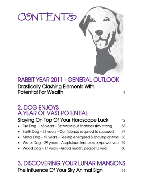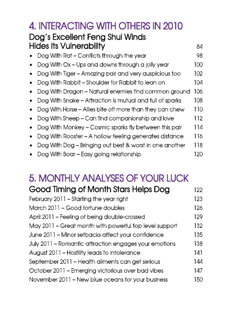 The DOG can savor the Wealth Luck of 8 and emerge triumphant at work and in business. Good feng shui multiplies good fortune but misfortune chi must be weakened. Get your placement energies right and you are sure to do well. FIND OUT HOW! In this book discover how you can