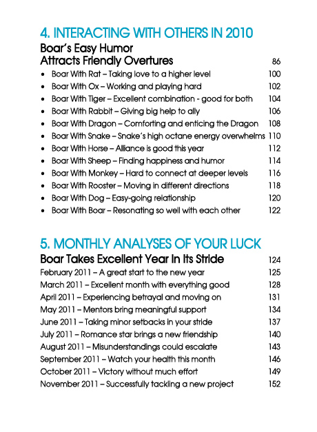 "The BOAR benefits fabulously from the powerful 8 star but must cope with conflicts. Update your feng shui correctly and good chi flows, bringing excellent luck continuously. FIND OUT HOW! In this book discover how you can